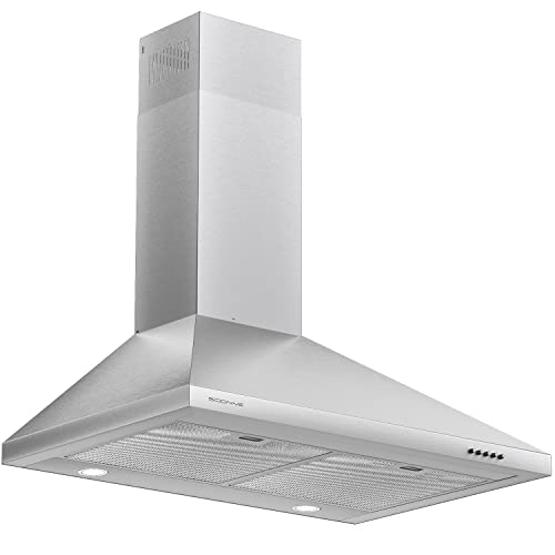 30 inch Stainless Steel Range Hood, 600 CFM Wall Mounted Vent Hood with 3 Speed Controls, 5-Layer Aluminum Filters, and Ducted/Ductless Convertible
