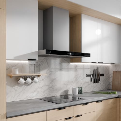 ULTRA QUIET OPERATION: Slim stove vent using a brushless motor has almost no noise at the lowest gear, 600 CFM airflow will quickly ventilate your kitchen and keep the noise level below 60 dB.