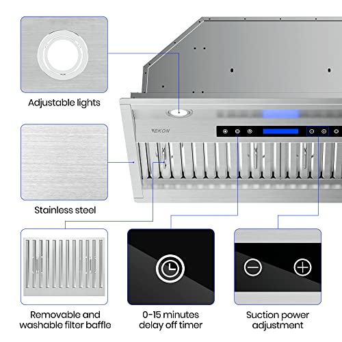 EKON NAB02-30″ 900CFM Range Hood Insert, Ducted/Ductless Built-in Range Hoods with Remote/4 Speeds Touch Control LCD Display,2pcs Baffle Filters,Adjustable Leds Lights for Over Kitchen Stove