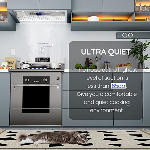 [ULTRA-QUIET OPERATION] The 30 range hood can only reach a sound of 65 decibels even at the highest speed, which is quieter than your usual call. Please be assured that your new range hood will effortlessly and quietly removes cooking odors and smoke, no disturb your dinner or disturb you while you are doing your homework.
