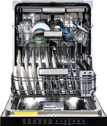Kenmore 24″ Built-In Stainless Steel Tub Dishwasher with EasyFlex 3rd Rack, SmartWash, UltraWash Plus, TurboDry, and MoreSpace Adjustable Rack, Energy Star Certified, Black