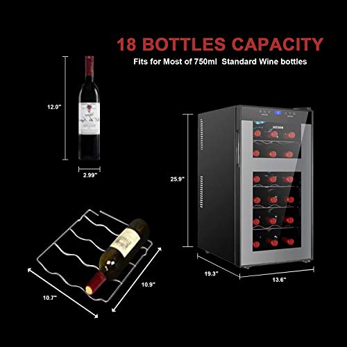 Wine Fridge Dual Zone,18 Bottles Wine Cooler Refrigerator Chiller Upper Zone 46f-54f Lower Zone 54f-65f for Red White Wine Champagne in Home Office Bedroom Countertop (18 Bottles,Black