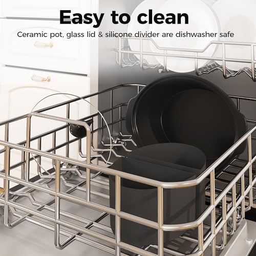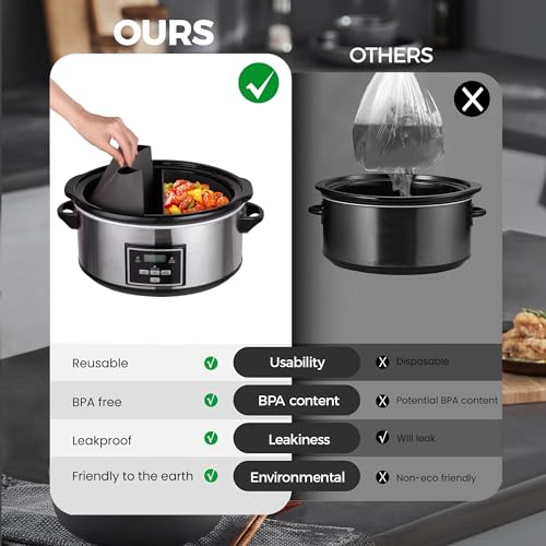 Easy to Clean: The reusable silicone liner shields your electric slow cooker from harsh cleaning and scrubbing, while the ceramic pot bottoms are easier to clean than traditional iron pots. Additionally, both the pots, silicone liner, and lids can be placed directly in the dishwasher, significantly simplifying the cleanup process after cooking.