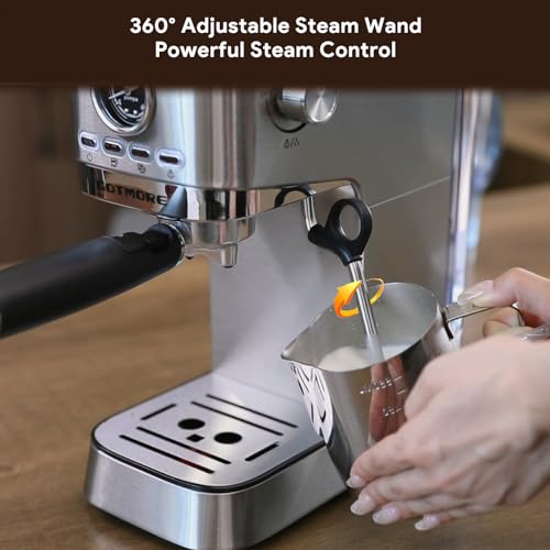 【Indulge in Café-Quality Espresso At Home】Experience the joy of café-quality espresso in the comfort of your own home with the GOTMORE Espresso Machine with Milk Frother. Craft your favorite espresso-based beverages, whether it’s a creamy latte, frothy cappuccino, or bold macchiato. The sleek stainless steel design not only complements any kitchen decor but also ensures durability and sophistication. Perfect for home, office, or as a thoughtful gift for coffee enthusiasts.