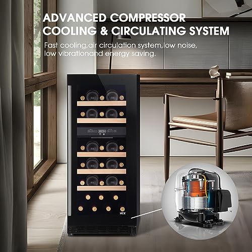 HCK Dual Zone Wine Cooler Refrigerator – Freestanding, Triple-Layer Glass, Electronic Temperature Control, Oak Wood Shelves – Stores 29 Bordeaux Bottles – Cellar Fridge with ETL Certified