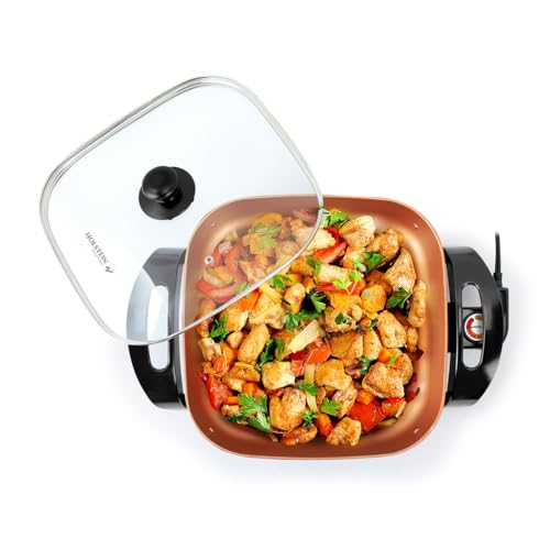 Holstein Housewares 12-Inch Electric Skillet and Frying Pan with Glass Lid, Non-Stick Coating, Temperature Control with Removable Heating Probe, Copper and Black Color