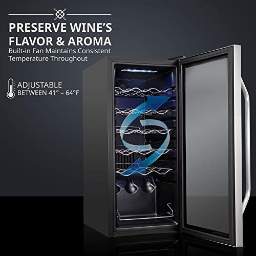 PRESERVE WINE’S FULLEST FLAVOR & AROMA – Set the temperature and let the wine cooler do the rest. With a built-in fan that maintains a consistent temperature throughout, this cooler ensures an optimal environment for long-term wine storage.