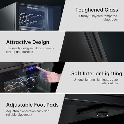 Convenience Features: Delve into the improved functionality of our wine cooler, equipped with a smart temperature memory function, adjustable legs for precise leveling, and soft white LED lighting for easy retrieval, ensuring convenience with every use.