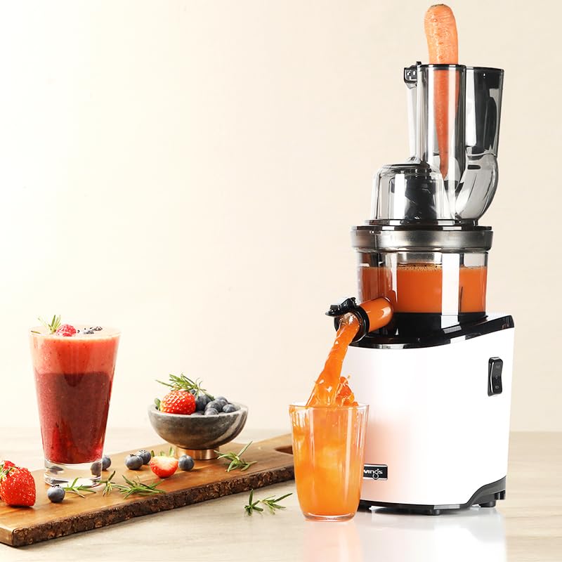 REVOLUTIONIZED JUICING: Make healthy juices with Kuvings Whole Slow Juicer. Dual sized chutes and a bladeless chopping design cuts and presses ingredients to minimize food waste while maximizing juice yield. Enjoy your drink – let the machine do the work!