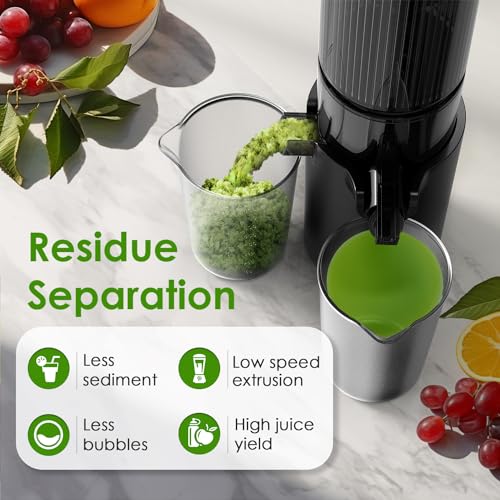 【Residue Separation】Low-speed extrusion will not destroy the cell wall of the pulp, resulting in more nutrition, less sediment, fewer bubbles, and a higher juice yield.