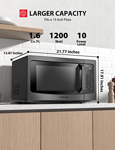 TOSHIBA ML-EM45P(BS) Countertop Microwave Oven with Smart Sensor and Position Memory Turntable, Function, 1.6 Cu.ft 13.6″ Removable Black Stainless Steel, 1200W
