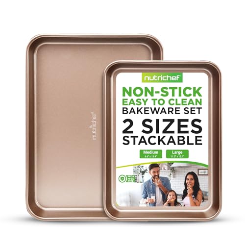 NutriChef 2-Piece Premium Nonstick Cookie Sheets for Baking – Slick Carbon Steel Baking Sheet Set w/ Raised Edges for Roasting, Baking, & More – 15″ x 11″ & 13″ x 9″ – PTFE, PFOA, PFOS Free