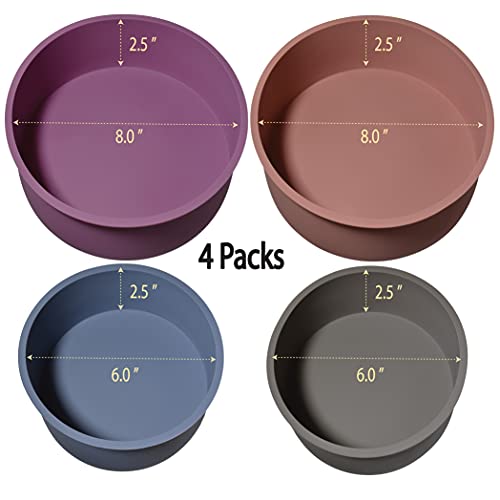 Round Silicone Cake Pans, Set of 4, Non-Stick Mold for Baking (6″x2pcs, 8″x2pcs)