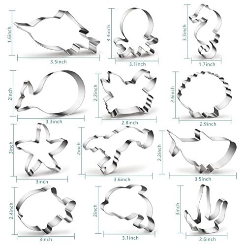 12PCS Ocean Creatures Cookie Cutters Set, ISZW Stainless Steel Marine Species Shapes Baking Mold for Kids Baking, Metal Cookie Sandwich Biscuit Cutter Molds for Kids Birthday Party DIY Cake Decoration