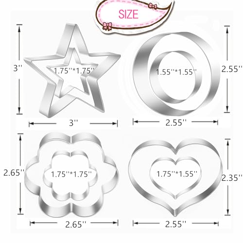 8 Pcs Heart Flower Star Round Metal Cookie Cutters Molds for Baking, Stainless Steel