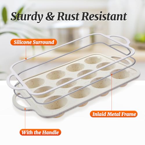 CAKETIME Silicone Muffin Pan, Metal Reinforced Frame Silicone Cupcake Pan Easy to Move 12 Cups for Baking Nonstick BPA Free Small Muffin Tin