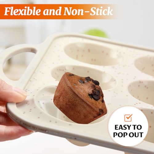NO STICKING: Compared to metal pan, this reinforced silicone muffin pan is a breeze to release. Polish surface makes muffins pop out with pressed finger from bottom. Flexible silicone makes it easy to clean thoroughly