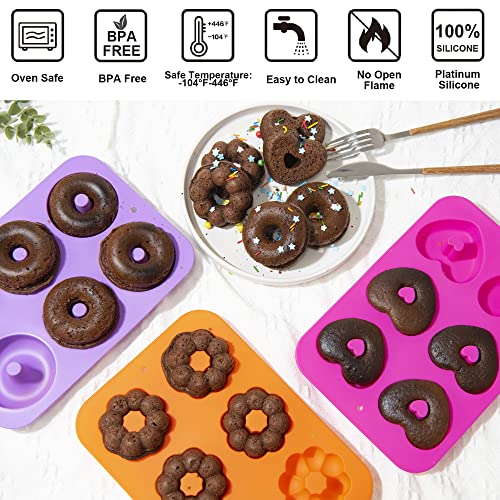 FOOD GRADE SILICONE: Silicone donut molds are made of food-grade silicone, durable and reusable.