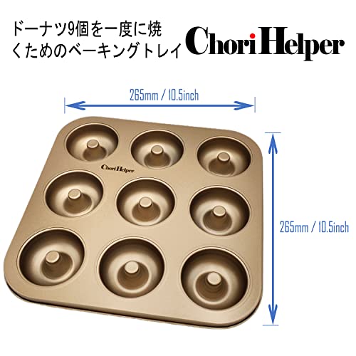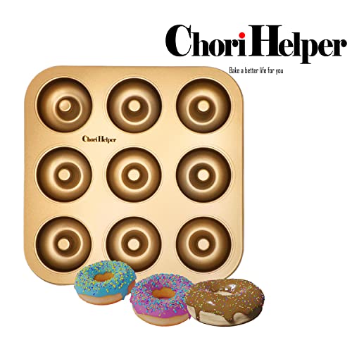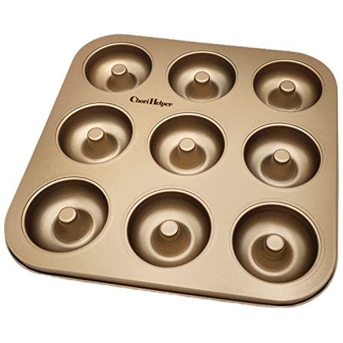 Non-Stick Carbon Steel Donut Mold for 9 Treats – Baking Tray with High Capacity, Easy Release, and Even Heat Distribution – Homemade Doughnuts, Bagels, Gold