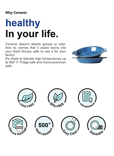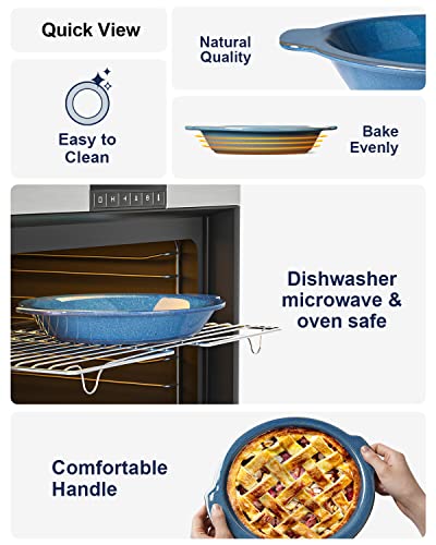 LE TAUCI Ceramic Pie Pans, 9 inch Baking Plates with Handles, Deep Pie Dish for Apple Pie, Pecan Pie, 36 Ounce – Set of 2, Ceylon Blue