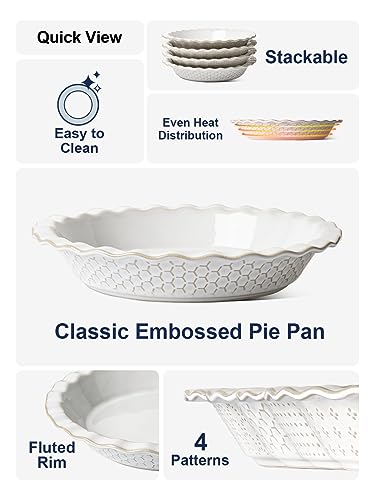 LE TAUCI Ceramic Pie Pans for Baking, 9 Inches Pie Plate for Apple Pie, Round Baking Dish, 36 Ounce Deep Dish Pie Pan – Set of 1, Honey Comb, Arctic White