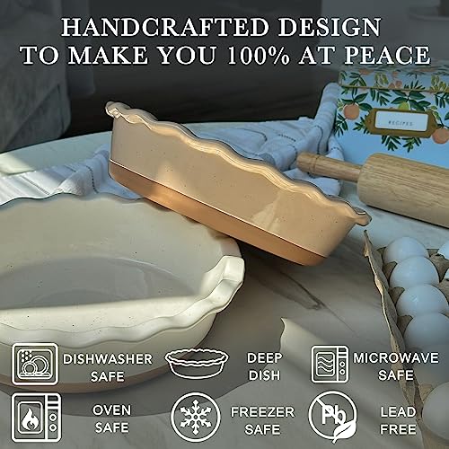 Mora Ceramic Pie Pan for Baking – 9 inch – Deep and Fluted Pie Dish for Old Fashion Apple Pie, Quiche, Pot Pies, Tart, etc – Modern Farmhouse Style Porcelain Ceramic Pie Plate – Chai