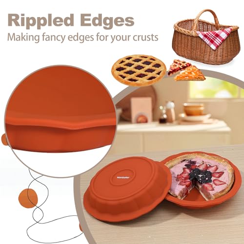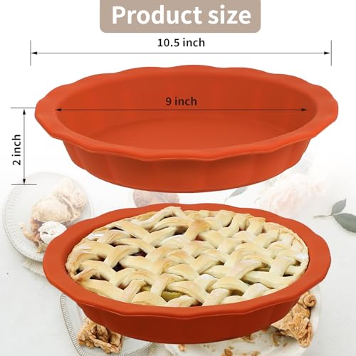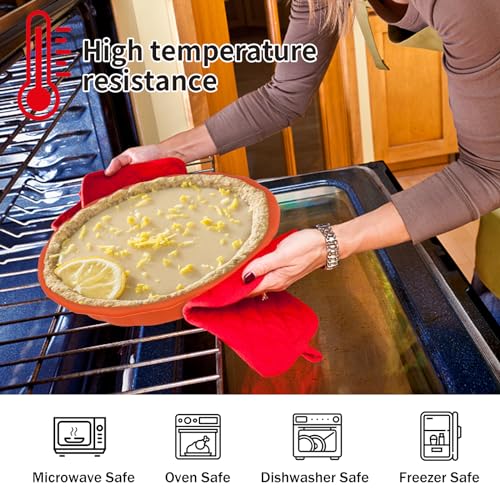 Silicone Pie Pans Dishes for Baking, 9inch Pie Dishes with Corrugated Edge Dishwasher Microwave Oven Safe (Red)