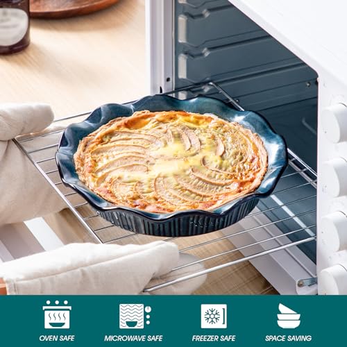 【Gift & Decoration】Perfect pie dishes for baking are suitable for all american families and an excellent choice for a housewarming gift, wedding gift, holiday gift, mother’s day gift, or father’s day gift. Classic round pie pans match most existing dinnerware, and we’re sure you lack a starry reactive glaze Blue pot pie plate in your kitchen collection.
