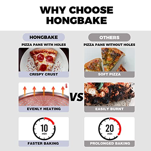 CRISPY PIZZA IN 10 MINUTES – The perforated center allows for more airflow, evenly and thoroughly baking which helps keep the crust crisp – that’s why restaurants serve pizza in a pizza pan with holes like this. Also, a perforated design is better for heating frozen pizza.