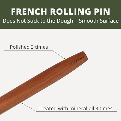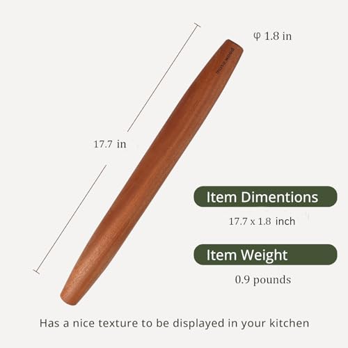 Muso Wood Sapele Wooden French Rolling Pin for Baking, Tapered Roller for Fondant, Pie Crust, Cookie, Pastry (French 17.5inch)