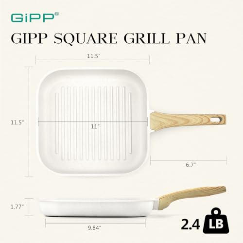 Be the first to review “GiPP Nonstick Grill Pan for Stove Tops – 11 Inch Square Grilling Pan for Indoor Cooking & Outdoor Grilling, Non Stick Granite Grill Skillet Steak Pan, PFOA Free, White”
