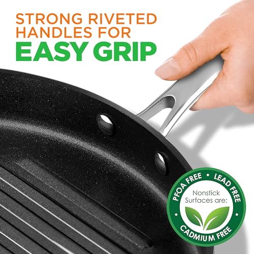NutriChef Anodized Non-Stick Grill – Dishwasher Safe Nonstick Grill Pan Heavy Gauge Aluminum Body with Hard Anodized Surface for Even Heating, Max Temperature: 500° Fahrenheit (260° Celsius)