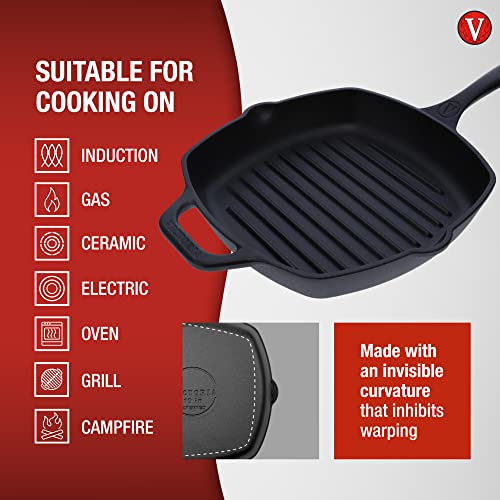 Our high quality cast iron grill pan has enough “”smart”” innovation to be more functional while remaining true to tradition, we took the essence of a good square grill pan and made it even better! Why you’ll love it: Zero Waste: Our clean and efficient factory is virtually zero waste. Our skillets are made from recycled cast iron that is melted at ultra high temperatures and then completely purified to is rawest form, bringing it back to its roots. Natural Release: Victoria cast iron cookware is naturally seasoned with 100% flaxseed oil. With proper use and care, its non-stick properties will improve with use. Non Toxic Pan: Free of PFOA and PTFE, we season with 100% Non-GMO Kosher certified Flaxseed Oil for a natural easy-release seasoning. Smarter and Stronger: Our intricately designed pour spouts with drip-catchers for easy cleanup. Bottom and rim of the pan are calculatedly designed to prevent warping & cracks due to temperature changes. Victoria cast iron skillets include instructions on use and care to upkeep and improve seasoning with time. Additionally, the hanging holes in the handles are big enough to hang on thick hooks. Multi-Functional, Multi-Faceted: Bake in it, Fry in it, BBQ in it. The Victoria bbq grill pan is suitable for cooking in: induction, ceramic, campfire, grill, oven, & more. Also, our square grill skillet is deeper and has a wider cooking surface than other competitors, allowing you to sear, bake and fry better. (Always preheat your deep grill pan before use). Better Handling: Victoria cast iron skillets have bigger handles than standard, this helps you to get a better grip and lift while handling, whether in the grill, campfire, oven, or stove.