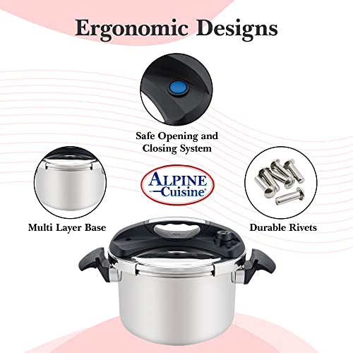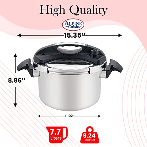 Alpine Cuisine Stainless Steel Pressure Cooker, for All Cooktops, Stove Top Pressure Cooker Used for Pressure Foodie or Steaming, Compatible with Gas & Induction Cooker, Dishwasher Safe (7 Liters)