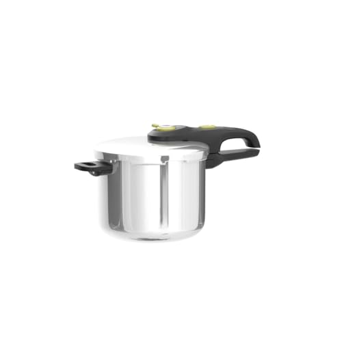 T fal Pressure Cooker, Stainless Steel Cookware, Dishwasher Safe, 15 PSI Settings, 6.3 Quart, Silver, Model P25107. Prepare healthy, delicious meals faster with this easy to use T fal pressure cooker. Reducing cook times by up to 70 percent (compared to conventional cooking), the large 6.3 quart cooker efficiently cooks a wide range of home cooked meals like roasts, soups, stews, chili, and more. The system combines steam, heat, and pressure for speedy resultswithout the loss of valuable nutrients and flavor like with other cooking methods. The pressure cookers multi layer base distributes heat evenly and prevents warping, and it can be used on all types of cooktops, including induction. Even more, the pressure cooker offers durable PFOA free stainless steel construction for a sleek appearance, long lasting durability, and health conscious performance. A steam basket and stand are included for multi level cooking options, like meat on the bottom, delicate veggies on top. For ultimate speed and convenience, choose between two pressure settings (10 or 15 PSI). The pressure cooker offers a variety of safety features, including a pressure indicator, a variable steam release valve, an over pressure gasket release window, a secure locking mechanism to ensure risk free opening and closing, and a sturdy stay cool handle for a secure, comfortable grip. With the lid removed, the base can go in the dishwasher for hassle free cleanup. A useful addition to any busy kitchen, the T fal 6.3 quart stainless steel pressure cooker offers ultimate time saving convenience for healthy at home cooking.