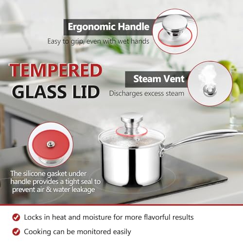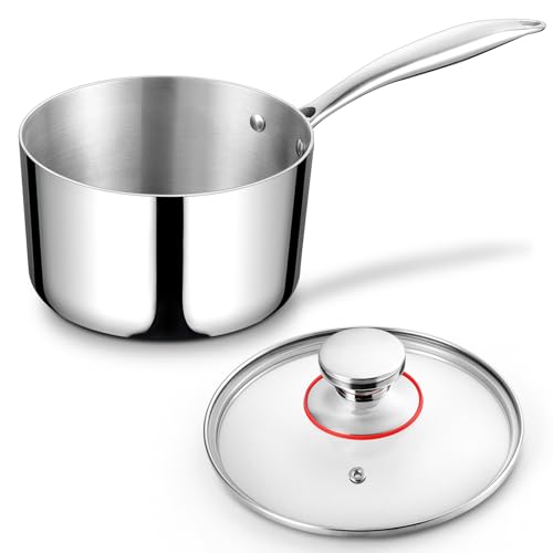 3-Quart Tri-Ply Saucepan with Lid, Joyfair 18/10 Stainless Steel Sauce Pot with Heatproof Handle, Induction Cookware for Cooking Boiling Stewing, Suitable for All Cooktops (Gas, Electric & Ceramic)