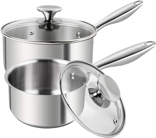 MICHELANGELO 2 Piece Stainless Steel Saucepan Set – 1Qt & 2Qt, Premium German Technology Sauce Pans, Induction Compatible 18/10 Stainless Steel