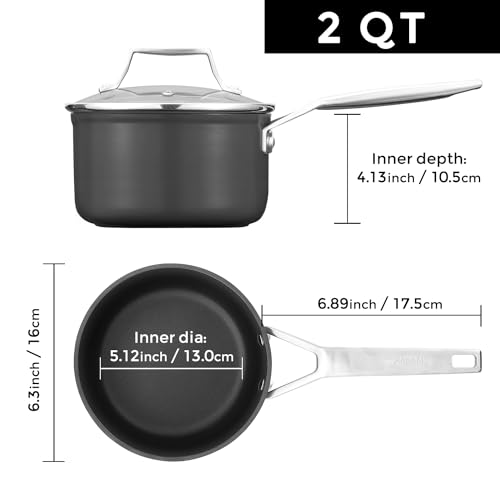 MSMK 2 Quart Saucepan with Lid, Burnt also Nonstick, PFOA Free Non-Toxic, Oven Safe to 700 ℉,Scratch-resistant, Induction Cooking Pot, for Induction, Ceramic and Gas Cooktops