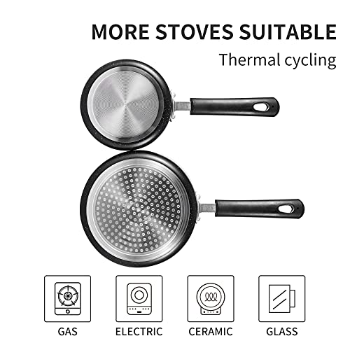 Nonstick Saucepan Set with Lid, Non Stick 1Qt & 2Qt Sauce Pan Set with Glass Lid Small Pot for Home Kitchen,Black