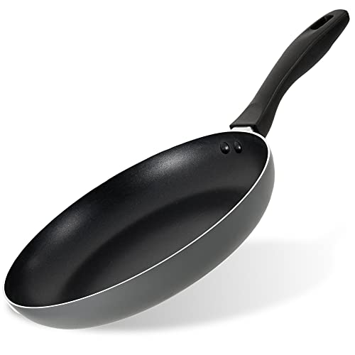 HEALTHY NONSTICK COATING FRYING PAN: This aluminum fry pan with Bakelite handles allows you to cook dishes that are healthier while retaining more taste and nutrients and using less oil. The nonstick coating of the egg frying pan makes it ideal for cooking tasty foods like omelets, braises, and stir-fries.