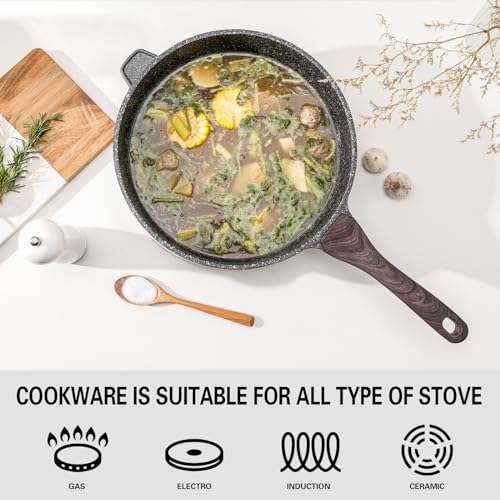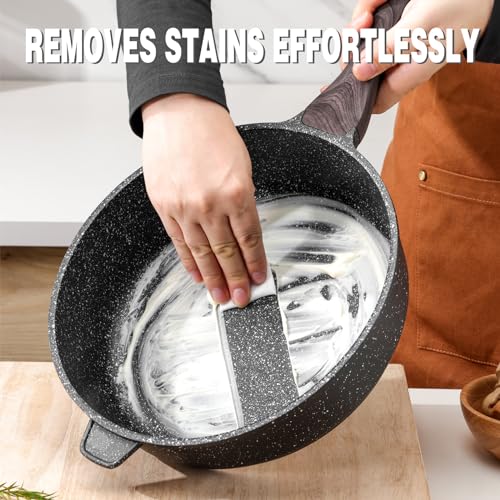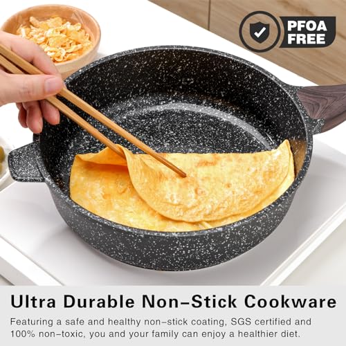 【Premium Non-Stick Coating】: Our sauté pan features a safe and healthy non-stick coating, SGS approved, and free from PFOA. Enjoy effortless cooking with minimal oil for a healthier diet. The granite non-stick coating ensures a smokeless and safe cooking experience.