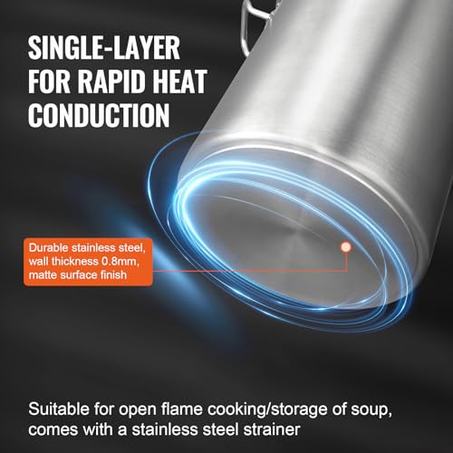 VEVOR Stainless Steel Stockpot, 42 Quart Large Cooking Pots, Cookware Sauce Pot with Strainer, Lid, and Handle, Heavy Duty Commercial Grade Stock Pot, Sanding Treatment, for Large Groups Events Silver