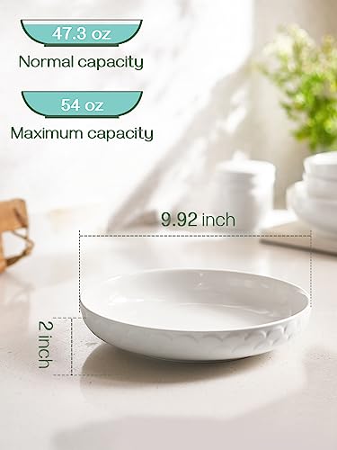DOWAN Pasta Bowls, 54 oz Large Salad Serving Bowls, 10” Plates Bowls Set of 4, White Ceramic Soup Bowls for Kitchen Meal Prep, Shallow Dishes Dinner Bowl Microwave Dishwasher Safe