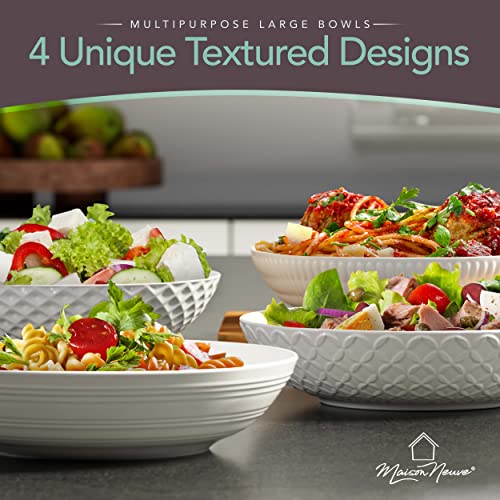 Maison Neuve Set of 4 White 34oz Porcelain Dinner Bowls – Dishwasher-Safe Textured 8.5″ Bowls For Soup, Pasta, Cereal