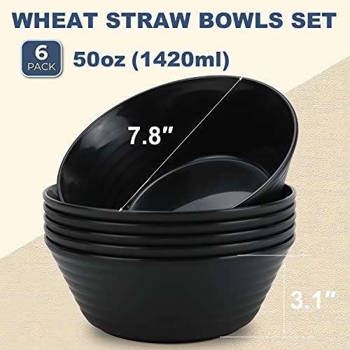 Wheat Straw Bowl Sets,6 PCS Unbreakable Cereal Bowl 50 OZ,Microwave and Dishwasher Safe Bowls,Super Big Bowl Sets BPA Free Eco Friendly Bowl for Serving Soup,Oatmeal and Salad (Black)
