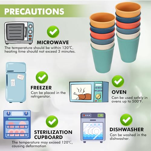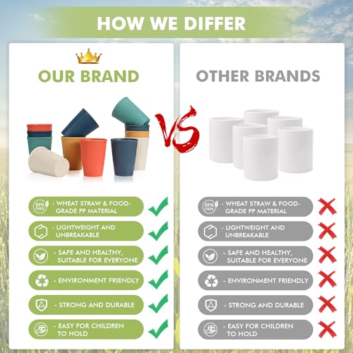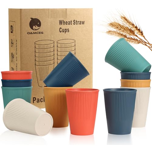 🍚 LIGHTWEIGHT & UNBREAKABLE: OAMCEG wheat straw cups designed with space-saving style and smooth round edges, for drink, juice, tea, soda, water and milk. 12OZ capacity can fit all your daily use. These plastic cups for party are light to hold and different colors of cups make life more pleasant. The Christmas cups are super sturdy and durable, unbreakable even if falling down! Prevent kids and adults from hurt.