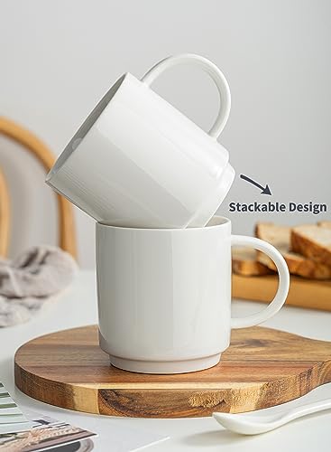 Sweese 10 Oz Stackable White Coffee Mug, Porcelain Coffee Mugs Sets of 6, Coffee Cups with Handle for Specialty Coffee Drinks, Cappuccino, Cafe Mocha, Latte and Tea, White