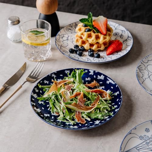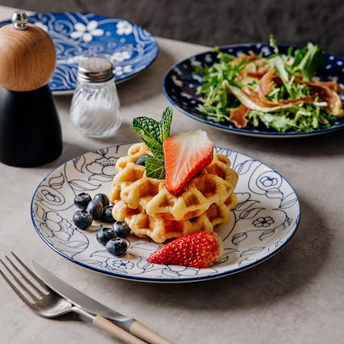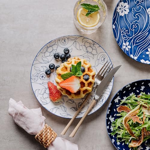 KITCHENLESTAR Retro Blue Dinner Plates Set With Assorted Patterns