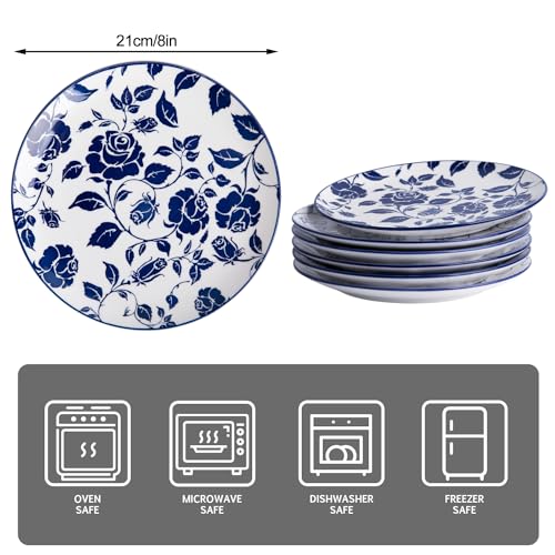 Ceramic Dinner Plates, 8 Inch Porcelain Dessert Salad Plates for Appetizer, Small Lunch – Dishwasher & Microwave Safe Kitchen Plates, Set of 6 (Blue)