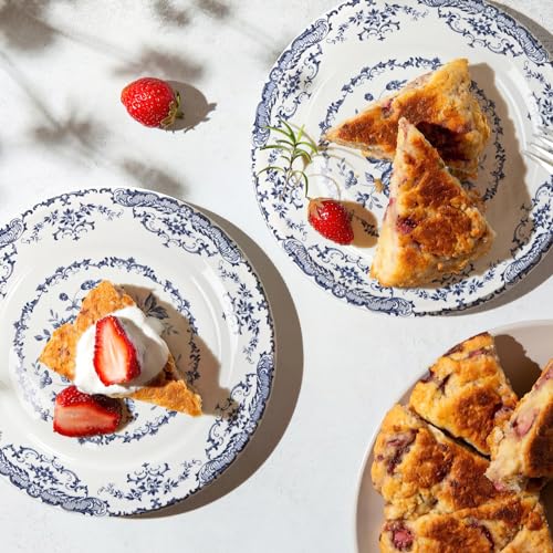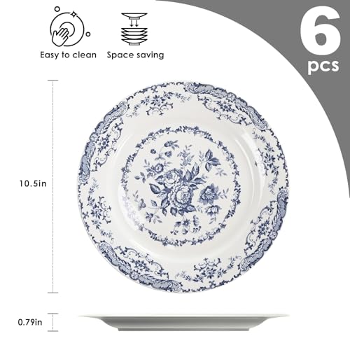 Dinner Plates, Ceramic Plates Set of 6, Kitchen Plates Microwave Safe Plates, White Plates Dessert Plates Blue Floral Plates Porcelain Plates (Blue Rose, 10.5 inch)
